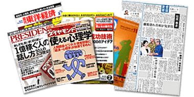 「産経新聞」、「プレジデント」、「週刊ダイヤモンド」、「週刊東洋経済」、「BIG tomorrow」その他、多くのメディアで取り上げられています。